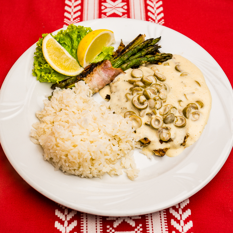 Pisztrángfilé olívabogyós mártással, rizzsel, spárgával